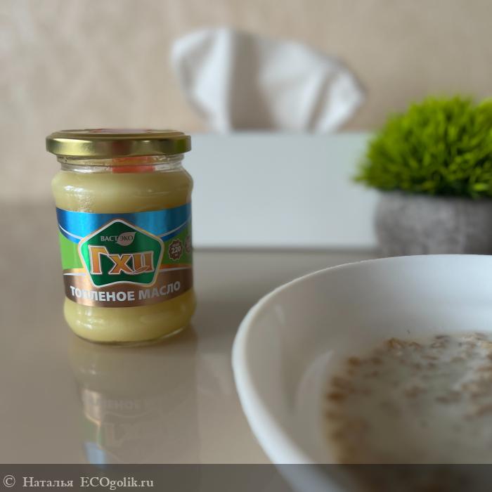 Информация от производителя: "Топлёное масло ГХИ ВАСТЭКО изготавливается из тщательно отобранного сырья, проходящего исследования в сертифицированных лабораториях по широкому спектру характеристик. Производится специально обученными мастерами с соблюдением всех необходимых составляющих традиционной технологии приготовления ГХИ. Две составляющие названия компании ВАСТУ и ЭКО, символизируют нашу искреннюю приверженность принципам чистоты и гармонии в жизни и изготовлении продуктов".