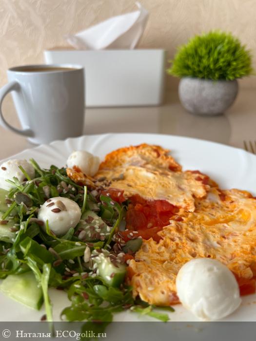 Добавляю к помидорам с яйцами еще салат легкий с сыром моцарелла и наслаждаюсь вкусной едой))