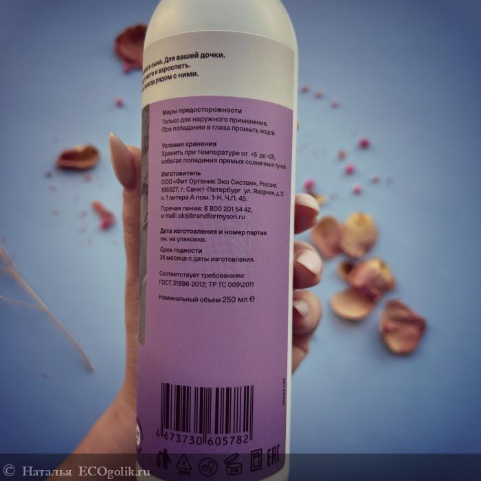 гель находится в плотном пластиковом флаконе объёмом 250мл, ph = 4,5 ; наклеена невероятно приятная тактильно этикетка с милой фотографией. Имеется информация о изготовителе: