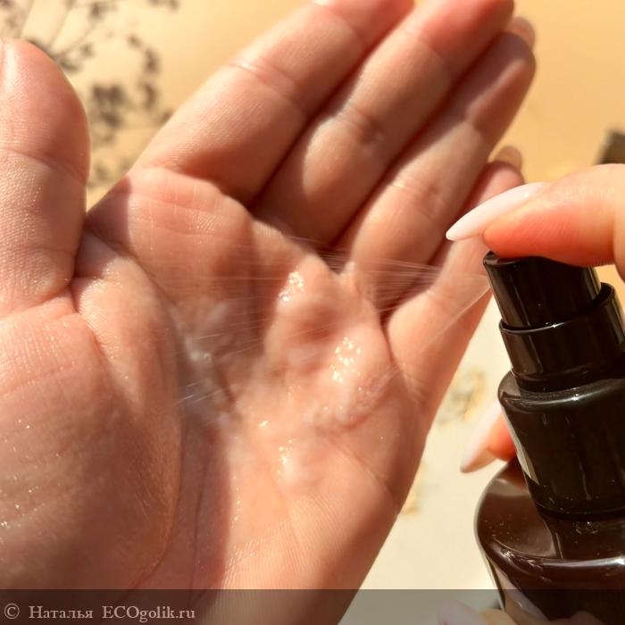 Текстура приятная легкая кремовая, словно флюид. Молочного цвета. Аромат непростой. Производитель заявляет