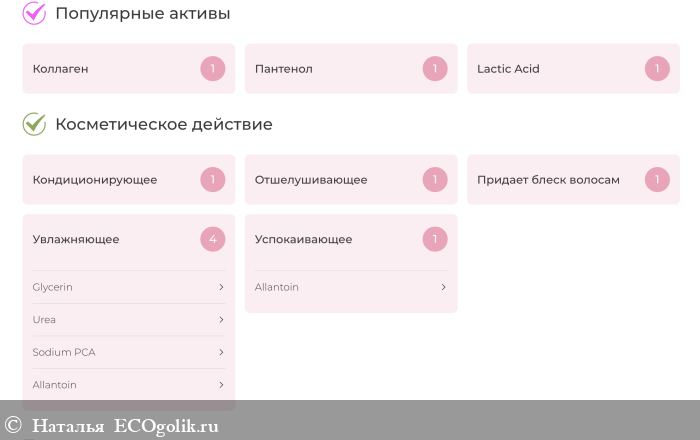 Состав натуральный, не тестируется на животных, ссылка на разбор: https://ecogolik.ru/sostav_kosmetika/result/368647... Сервис проверки не распознал растительные экстракты. Основное косметическое действие по результатам сервиса проверки направлено на увлажнение, так же оказывает кондиционирующий эффект, придает блеск волосам, успокаивает и отшелушивает :