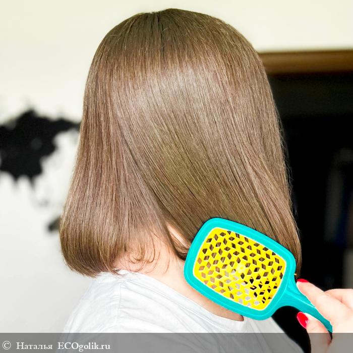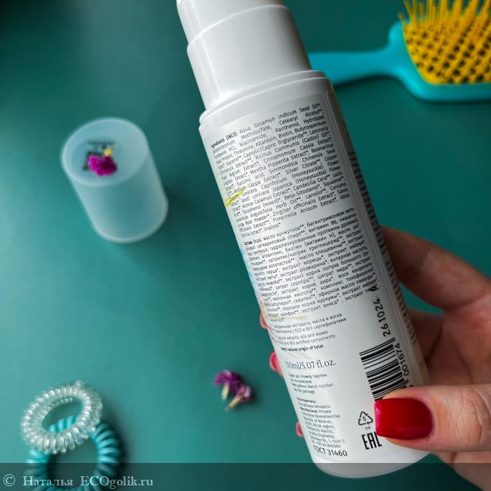 На этапе нанесения с первого раза я поняла, что это средство мне подойдет, т к текстура прекрасно распределяется по волосам и не стекает моментально, волосы можно легко "расчесать пальцами" и никаких узелков при этом нет - они гладкие.