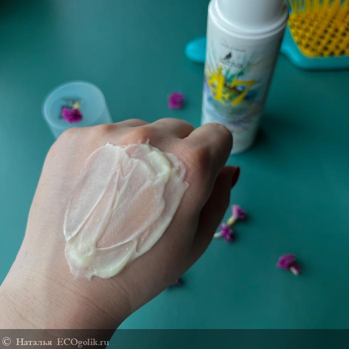 Текстура кремообразная, с легким светло - желтым оттенком: