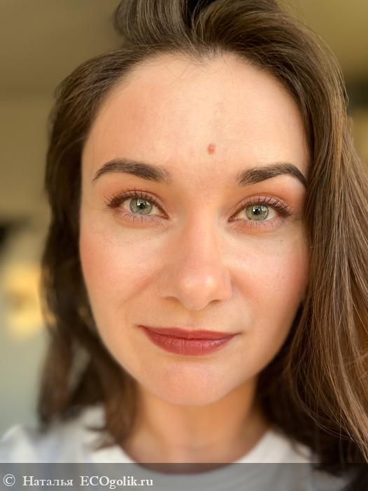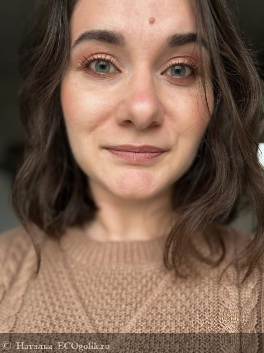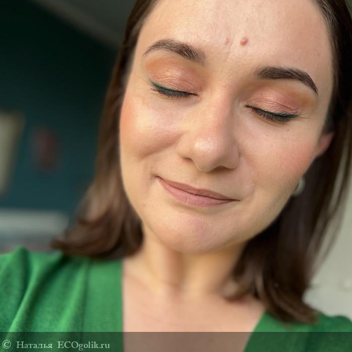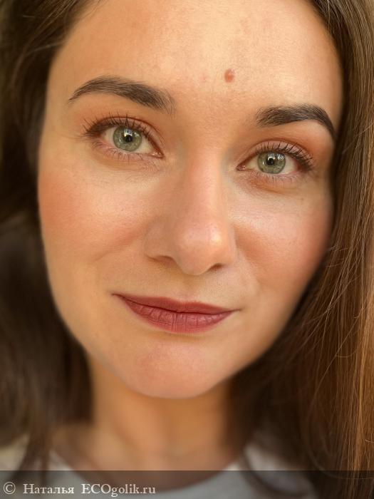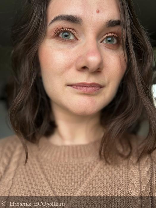 *Здесь оттенок получился более интенсивный, добавила стрелочку коричневую на веках, чтобы более гармонично смотрелся образ.