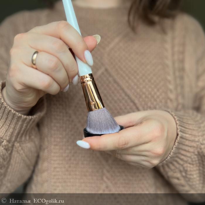 Люблю наносить румяна скошенной кистью. Так как они в рассыпчатом формате, а не прессованные, то пылят:
