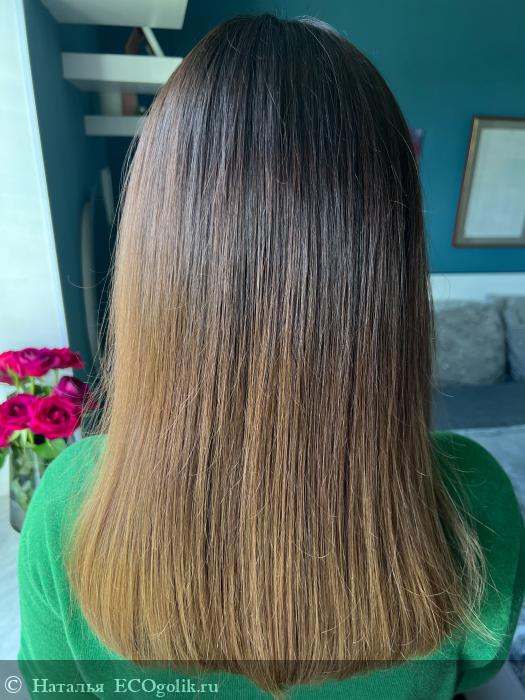 Вот так это выглядит в жизни: волосы просто высушены феном, без стайлинга, никакого несмываемого ухода нет (масло на кончики или молочко на длину не наносила). Чистые и расчесанные, аккуратно лежат без колтунов, хорошо расчесываются. Видно ломкость по длине, но это задачка для питательных масочек))