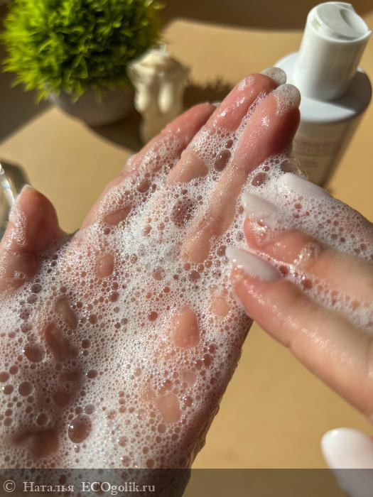 При контакте с водой пенится просто замечательно! Мою голову два раза. Шампунь-кондиционер хорошо справляется с очищением. У меня жирная кожа головы и сухие волосы по длине, осветленные, окрашеные. Никаких побочных эффектов в виде зуда, перхоти, покраснения не было. Волосы не утяжеляет, промывает отлично. После мытья наношу свой привычный кондиционер или маску.