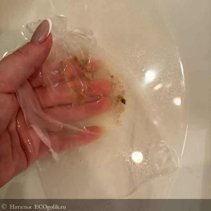 В мешочек соль легко набирается, не просыпается через него. Акксессуар после принятия ванны быстро сохнет.