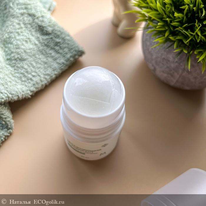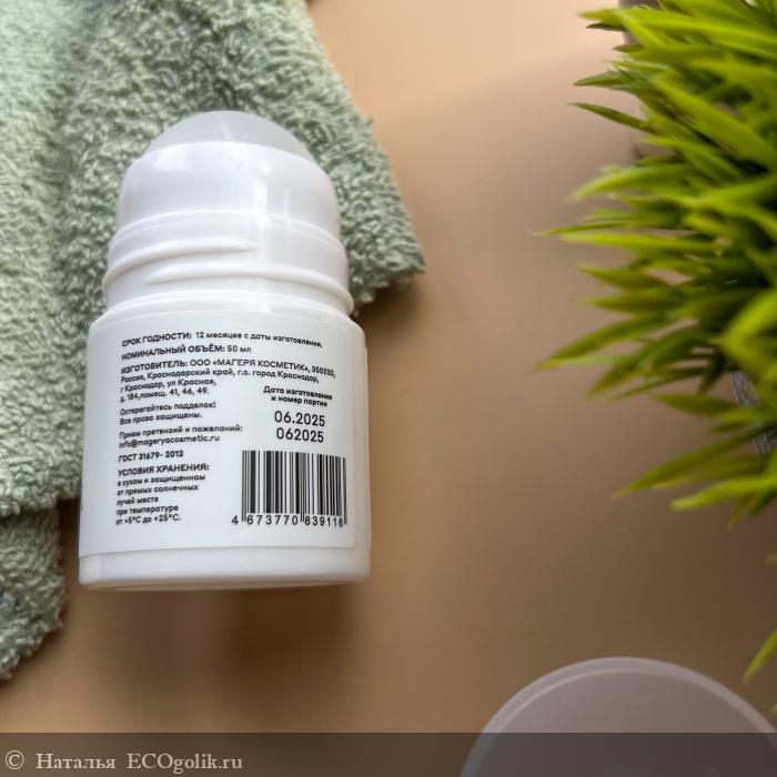 Шариковый дезодорант объёмом 50мл с откручивающейся крышкой; он небольшого формата, который удобно положить с собой в сумку. Срок годности после вскрытия сокращается с года до 3х месяцев, хранить нужно от прямых солнечных лучей в сухом месте. Состав полностью одобрен сервисом проверки, ссылка: https://ecogolik.ru/sostav_kosmetika/result/342097...