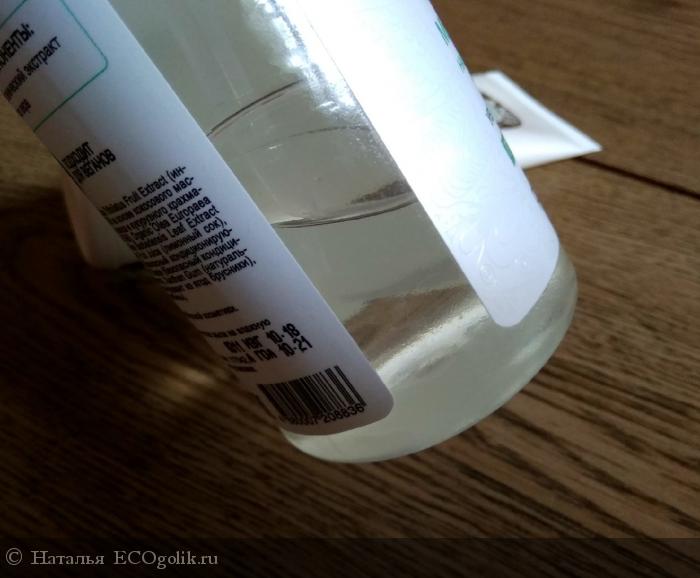 Aqua with infusions of Sapindus Trifoliatus Fruit Extract (индийский мыльный орех), Sodium Coco-Sulfate (ПАВ на основе кокосового масла), Decyl Glucoside (безопасный ПАВ на основе кокоса и кукурузного крахмала), Sodium Cocoyl Apple Amino Acids (яблочный ПАВ), Organic Olea Europaea Fruit Oil (органическое масло оливы), Organic Aloe Barbadensis Leaf Extract (органический экстракт алоэ-вера), Citrus Limon Fruit Juice (лимонный сок), Citric Acid (лимонная кислота), Coco-Glucoside (безопасный кондиционирующий компонент и ПАВ на основе кокоса), Glyceryl Oleate (безопасный кондиционирующий компонент на основе оливкового масла), Xanthan Gum (натуральный полисахарид), Sodium Benzoate (пищевой консервант из ягод брусники), Potassium Sorbate (пищевой консервант из ягод рябины).