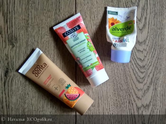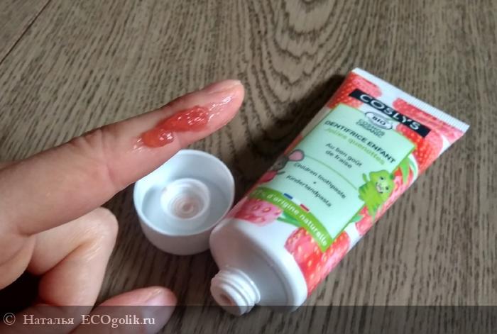 "100% натуральная детская зубная паста Coslys разработана с учётом потребностей молочных зубов.