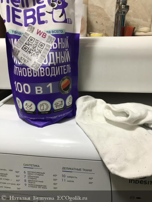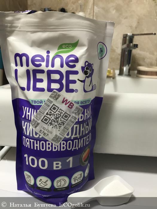 Спешу поделиться своими впечатлениями по работе универсального кислородного пятновыводителя и отбеливателя 100 в 1 от Meine Liebe. При замачивании белого белья использовала мерную ложку отбеливателя на 7 литров горячей воды. Процесс пошел моментально,поскольку вода стала грязной.Оставила белье на час и результат просто поразил,белые носочки стали как новые,очистились от загрязнений без усилий.Сам порошок не имеет запаха,не содержит хлор,что очень приятно,гипоаллергенен.Расход экономичен,к тому же в пакете имеется мерная ложечка.Это универсальное средство подходит не только для стирки и отбеливания,еще я использовала его для уборки в санузле и ванной.Он не только отлично чистит,но и дезинфицирует. Попробовала в работе на кухне: почистила столовые приборы.Теперь они сияют и блестят.Работой универсального кислородного пятновыводителя я очень довольна.Это настоящая палочка-выручалочка.которая должна быть в арсенале у каждой хозяйки.А еще данное средство экологично и безопасно,поэтому спокойно можно и использовать в доме,где живут дети.