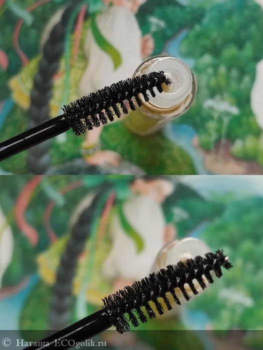 Кисточка аккуратная, пушистая. Ею удобно наносить средство на ресницы и брови. Напоминает кисточки для объёмной туши.