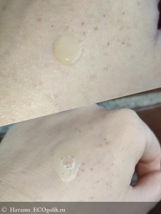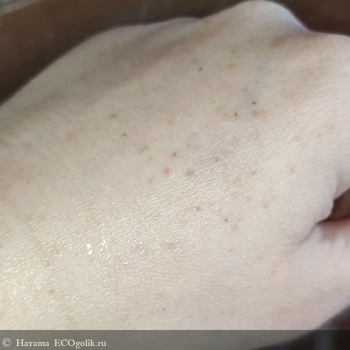 Текстура очень приятная, не текучая, легко распределяется по коже, впитывается быстро, нет ощущения липкости или плёнки на коже.