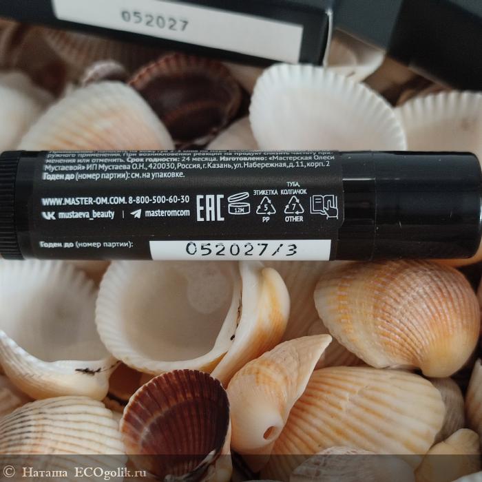 Состав бальзама для губ "Lavender" от Мастерской Олеси Мустаевой указан на картонной упаковке.
