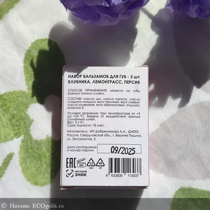 Напомню, что в моём наборе 3 бальзама "Клубника, Лемонграсс, Персик":