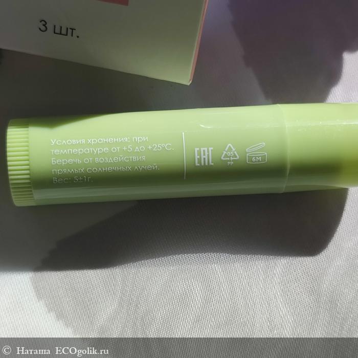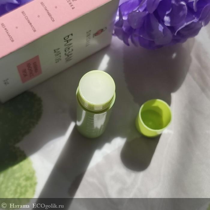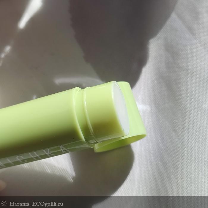 Сам бальзам для губ находится в стике нежно-зеленого оттенка. Колпачок надёжно защищает содержимое стика.