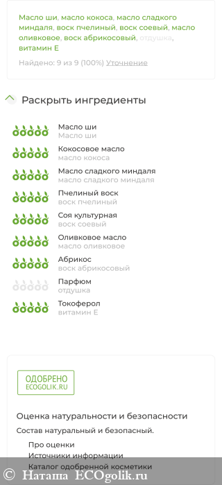Состав бальзама для губ "Лемонграсс" указан на картонной упаковке. Продублирую: