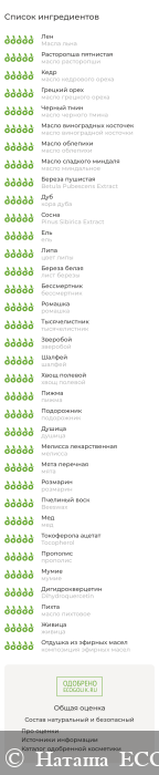 Древесный бальзам содержит 8 древесных экстрактов, 9 масел холодного отжима, 12 целебных трав.