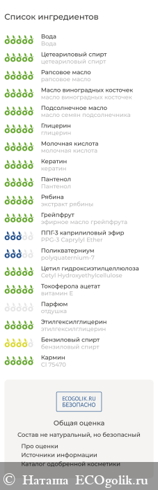 Несмотря на сомнительный состав бальзам-ополаскивателя, какой-либо негативной реакции от применения средства у меня нет.