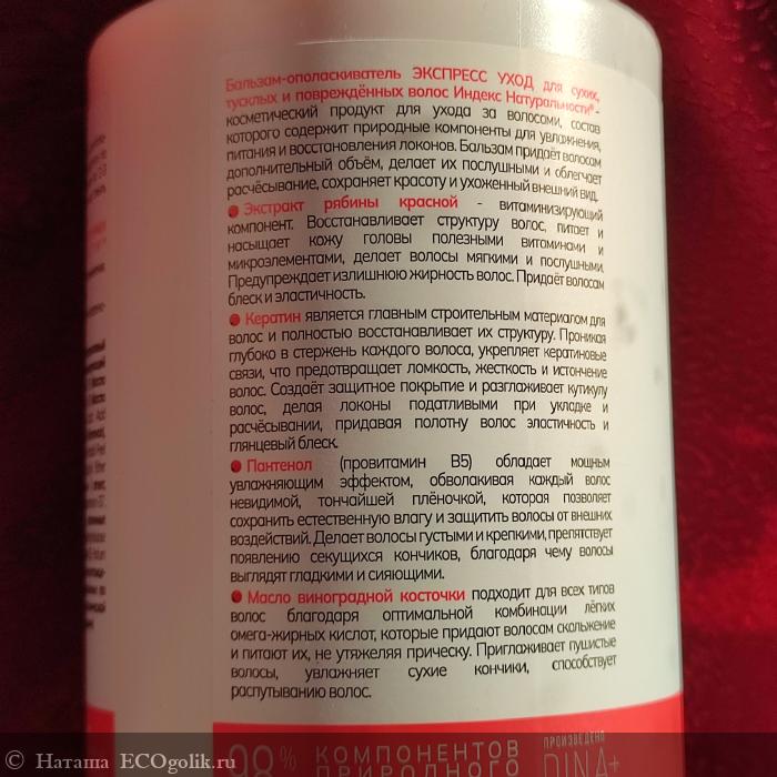 Наташа: Бальзам-ополаскиватель "Экспресс уход" для сухих, тусклых и повреждённых волос от Индекса натуральности