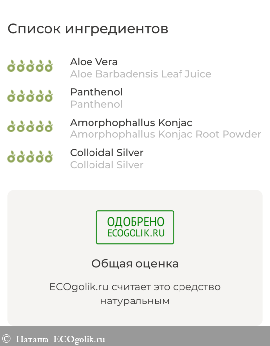 Panthenol (Д-пантенол), Amorphophallus Konjac Root Powder (конжаковый глюкоманнан), Colloidal Silver (концентрат коллоидного серебра).