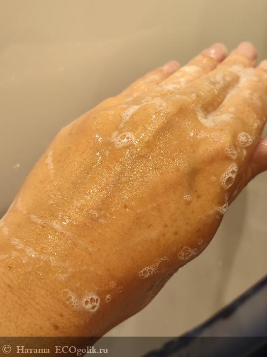 Без губки или мочалки гель пенится слегка: