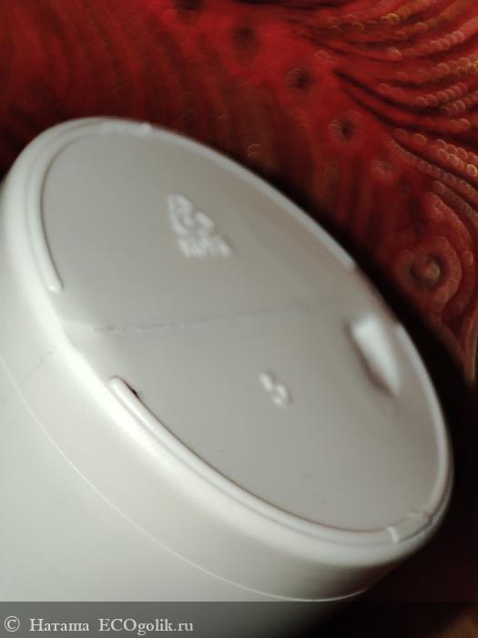 Флакон выполнен из белого непрозрачного пластика