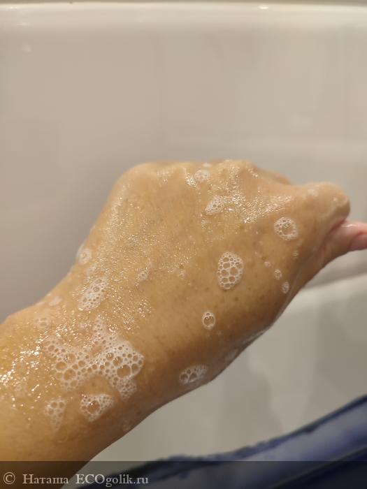 Без губки или мочалки гель пенится слегка: