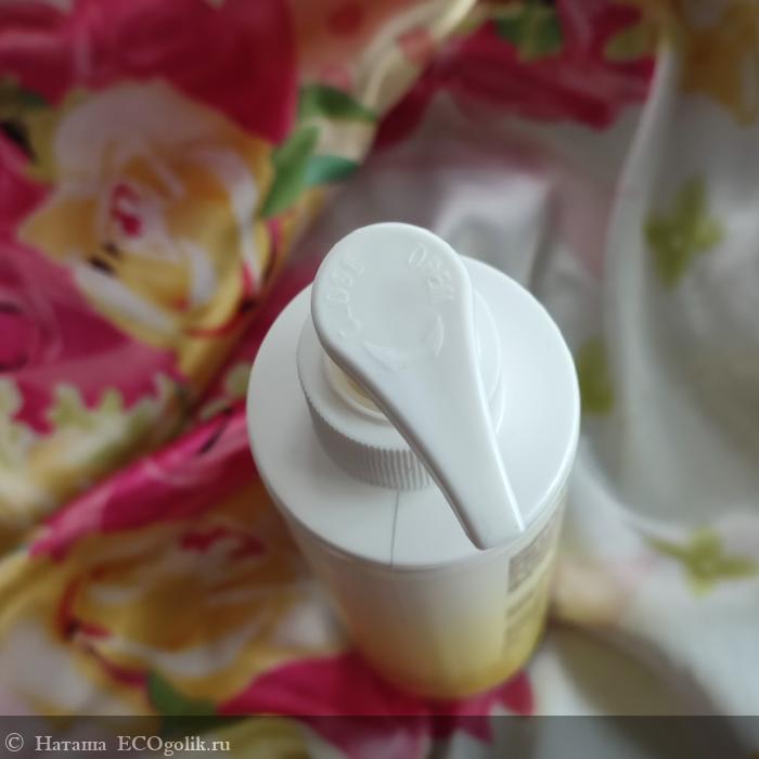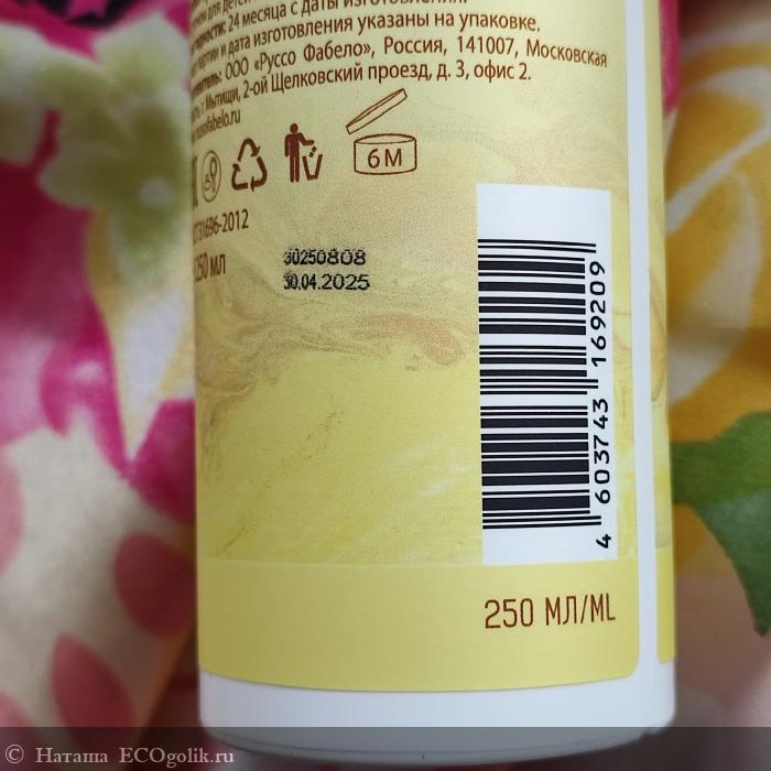 Имеется круговая этикетка, выдержанная в солнечном, жёлтом оттенке. Этикетка тактильно приятная, благодаря чему флакон не скользит в руках.