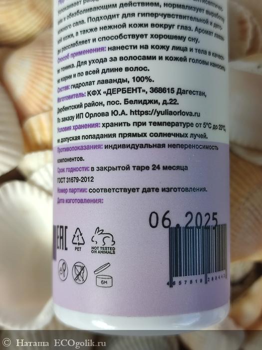 Состав гидролата лаванды указан на этикетке. Продублирую: