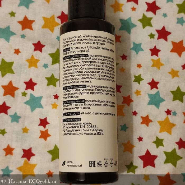 Мне очень понравился гидролат Розмарин от Лавандового края.