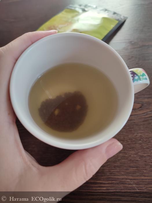 Чайный напиток приобрел лёгкий зелёный оттенок, семена гречихи и кусочки груши разбухли. Аромат невероятный, очень вкусный, уютный.