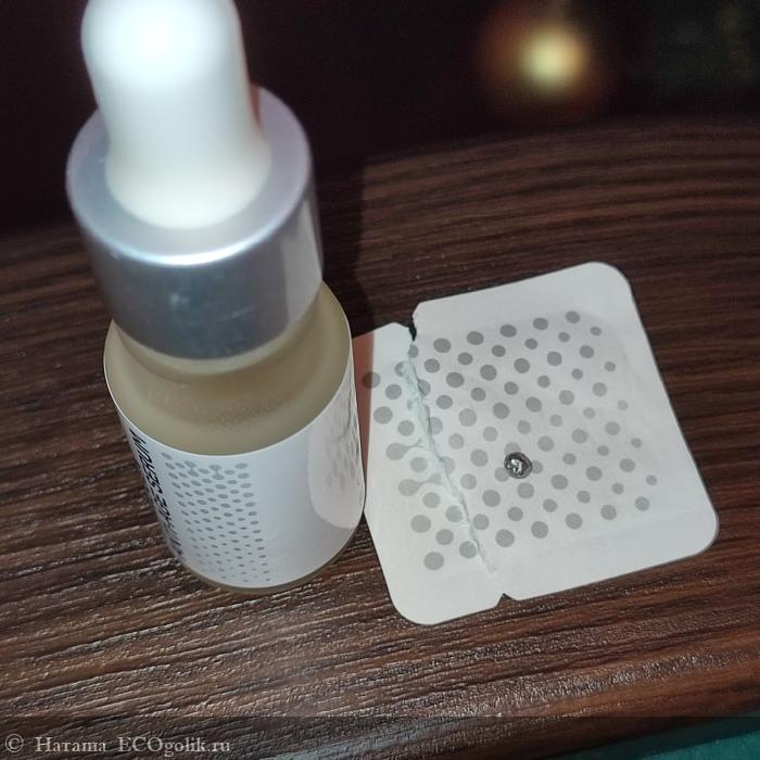 Также вложен маленький квадратный пакет с шариком, который необходимо добавить в флакон с сывороткой.