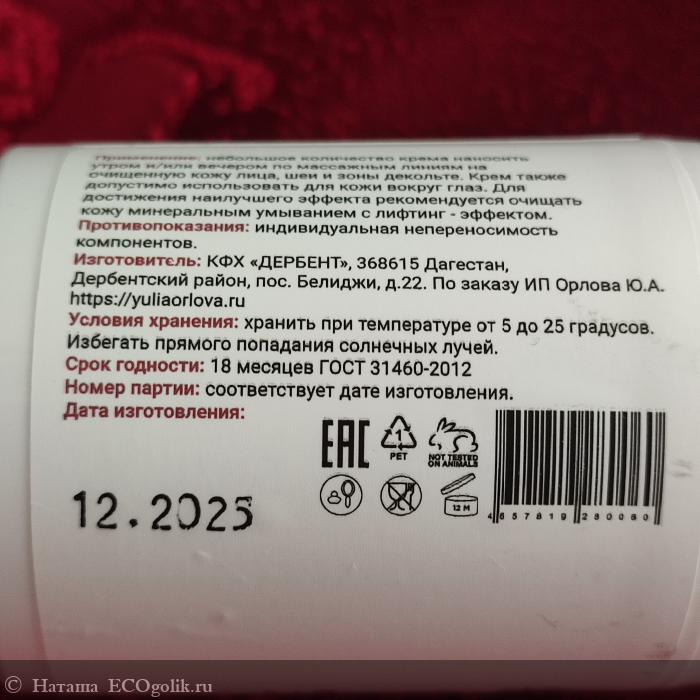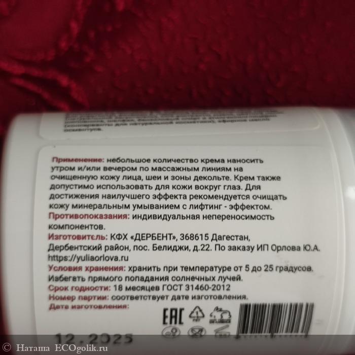 Наташа: Крем лифтинг-эффект от бренда натуральной косметики ЮЛИЯ ОРЛОВА