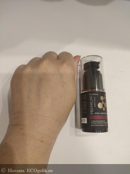 Подводя итоги, хочу сказать, что крем-миорелаксант для кожи вокруг глаз с минипротеином из яда конической улитки от Kleona меня приятно удивил. Крем моментально впитывается в кожу, никаких неприятных ощущений нет, аромата практически нет. Кожа сразу подтягивается, на ощупь это чувствуется 100%.