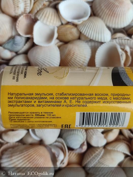 Натуральная эмульсия, стабилизированная воском, природными полисахаридами, на основе натурального меда, с маслами, экстрактами и витаминами А, Е.