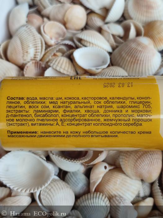 календулы, семян конопли, облепиховое), натуральный мёд, сок облепихи, глицерин, лецитин, соевый воск, ксантановая камедь, альгинат натрия,