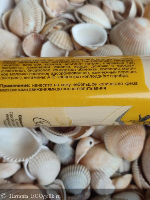 донника, моркови), Д-пантенол, бисаболол, концентрат облепихи, прополис, молочко маточное пчелиное адсорбированное, жемчужный порошок (экcтракт),