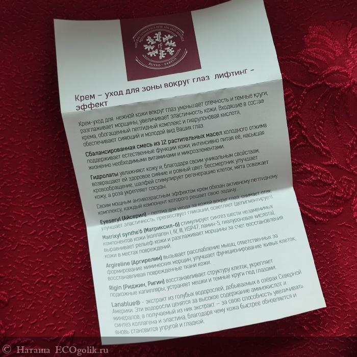 Состав крем-ухода для зоны вокруг глаз с лифтинг-эффектом указан на вкладыше: