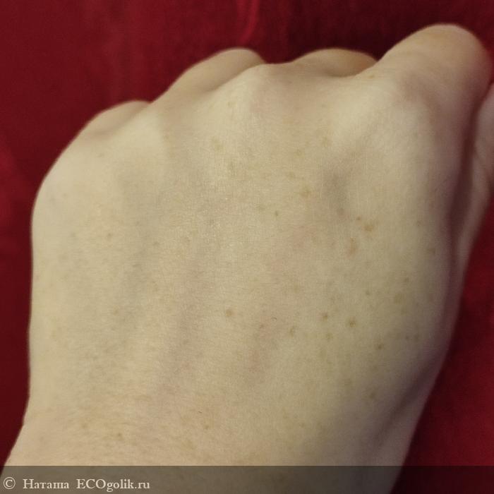 При этом молочко имеет лёгкий эффект шиммера, едва заметный на коже: