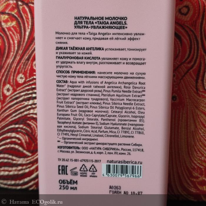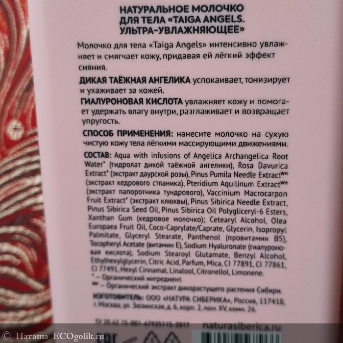 Состав молочка для тела "Taiga Angels" указан на этикетке. Продублирую: