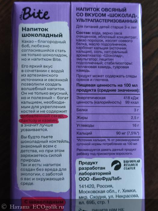 Наташа: Напиток растительный овсяный со вкусом "Шоколад" от Bite