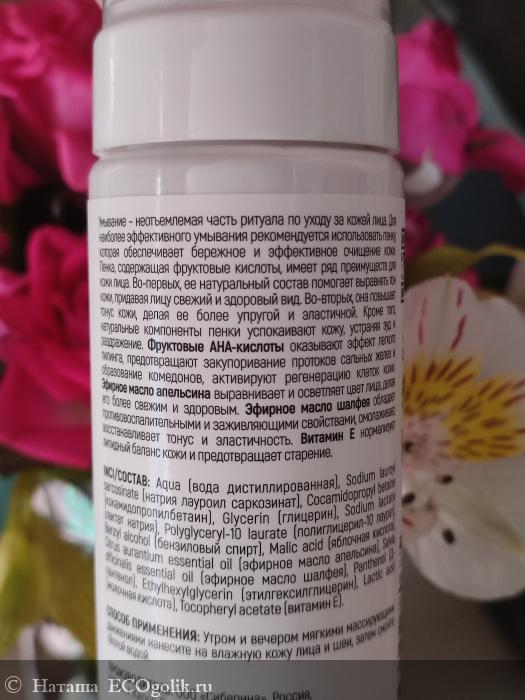 Мне очень понравилась натуральная пенка для умывания "Глубокое очищение" с фруктовыми кислотами от SIBERINA.