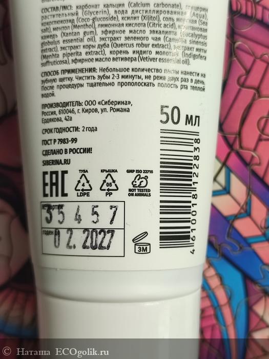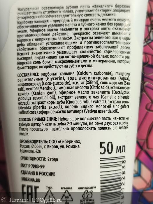 Наташа: Натуральная зубная паста освежающая "Эвкалипт" от SIBERINA