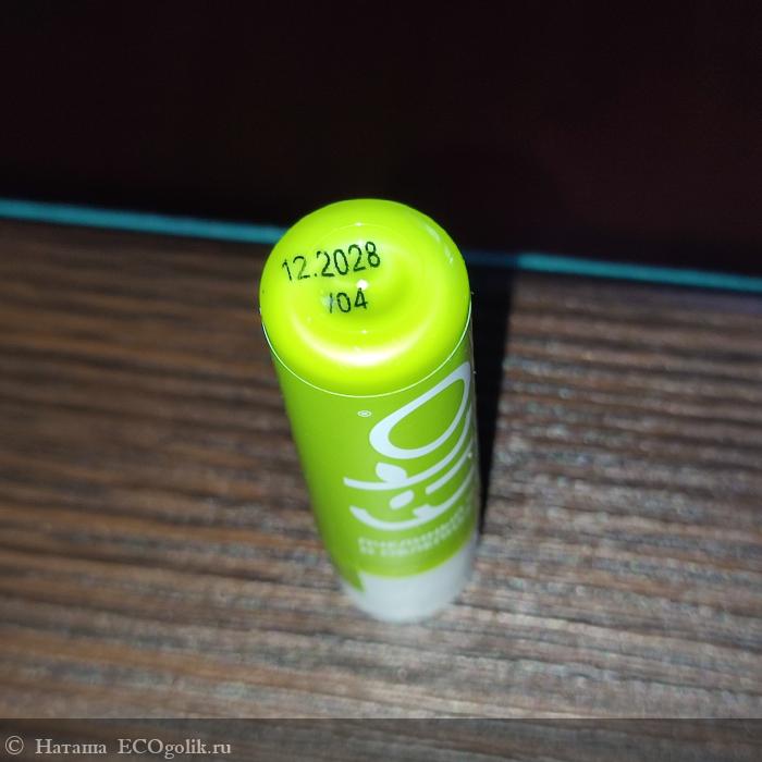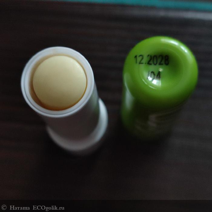 Бальзам для губ находится в пластиковом стике зелёного цвета. Колпачок надёжно защищает содержимое стика.