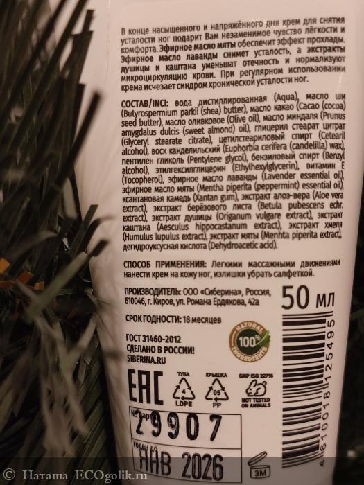 Натуральный крем для ног "От усталости" от SIBERINA