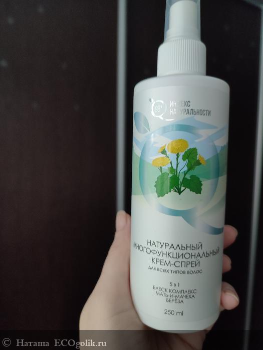 Сегодня обзор средства от Индекса Натуральности. К Вашему вниманию Натуральный многофункциональный крем-спрей для всех типов волос 5 в 1 блеск комплекс, мать-и-мачеха, берёза.
