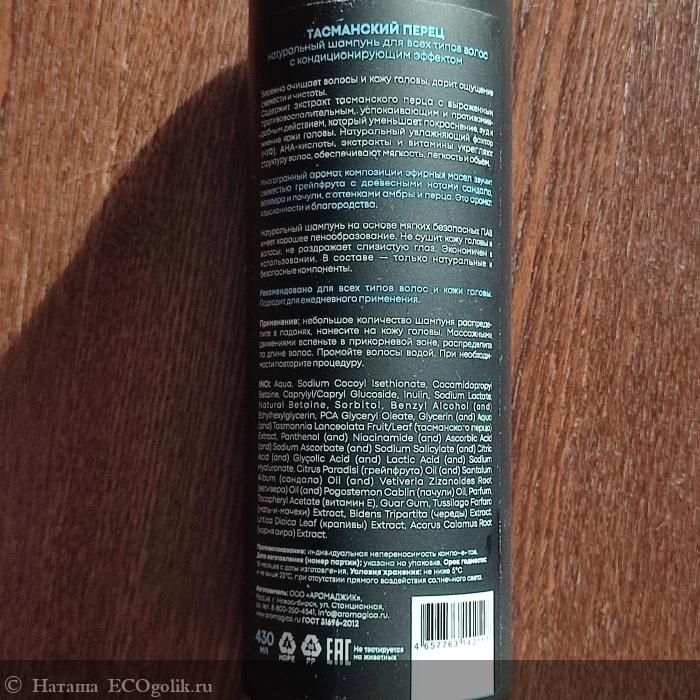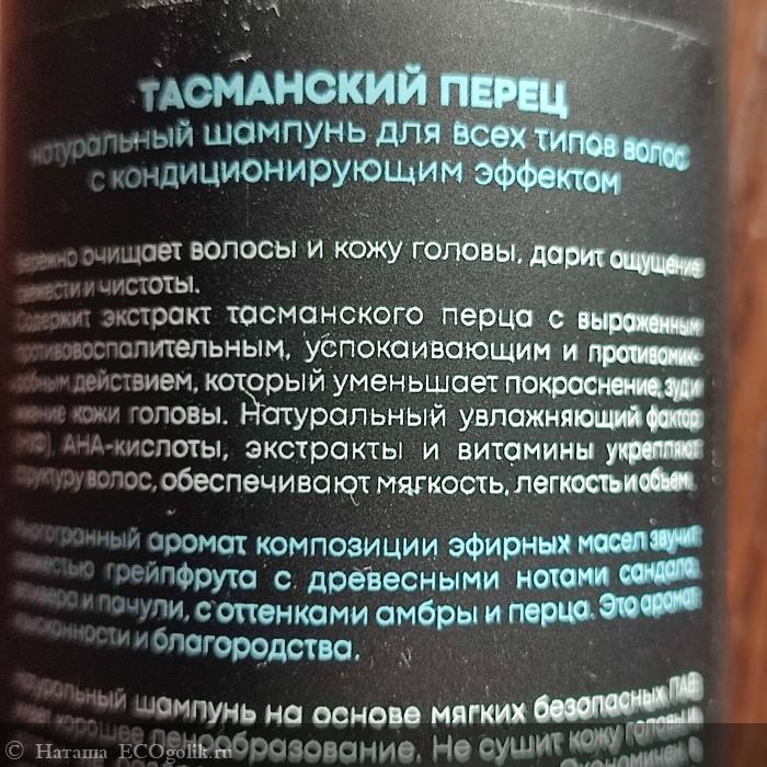Натуральный шампунь "Тасманский перец" для всех типов волос с кондиционирующим эффектом бережно очищает волосы и кожу головы, дарит ощущение свежести и чистоты.