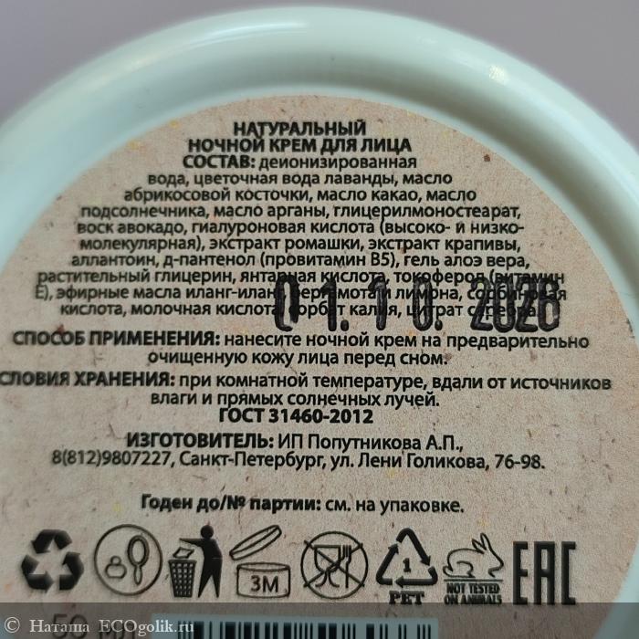 Состав натурального ночного крема для лица с аргановым маслом указан на этикетке: